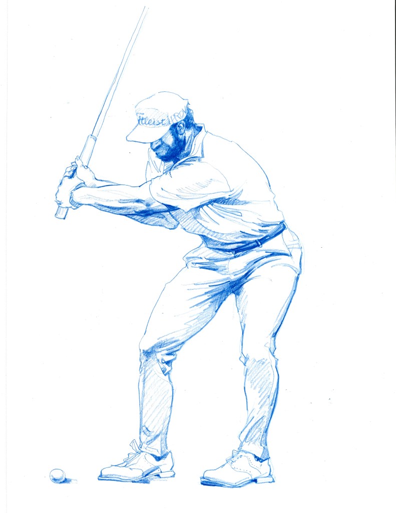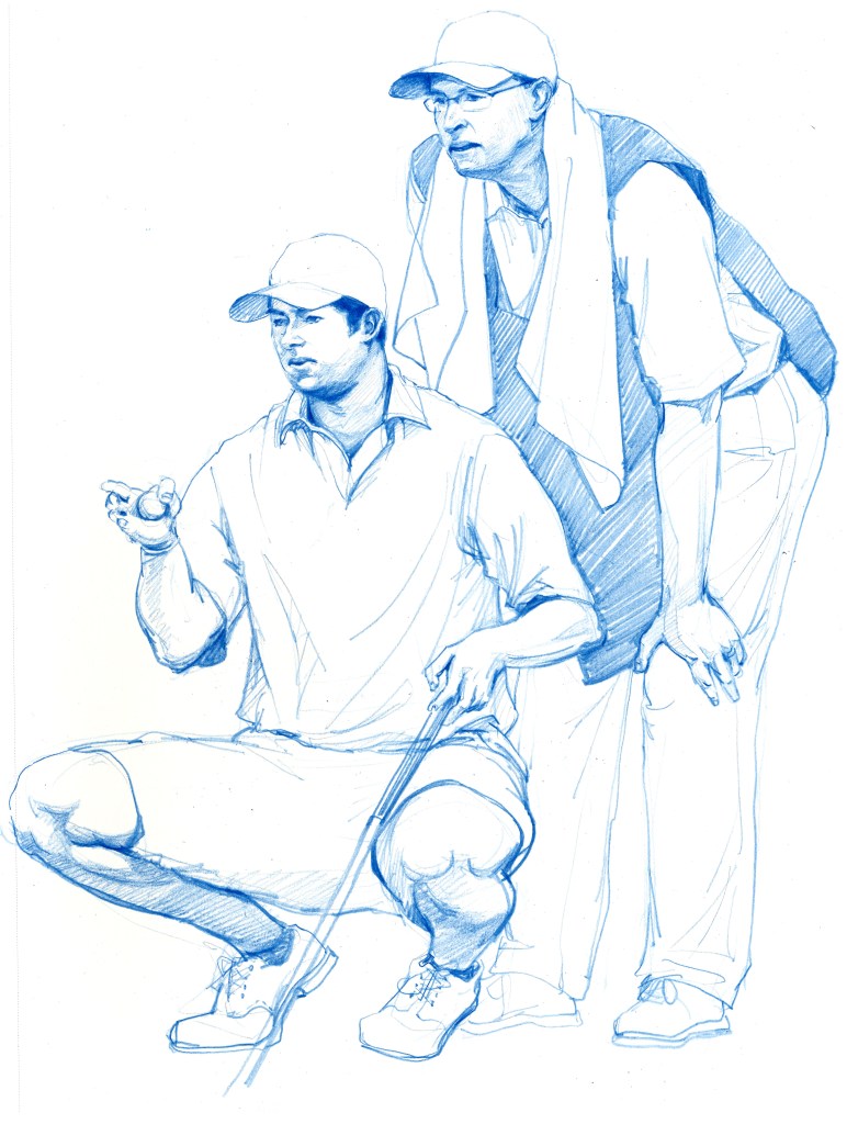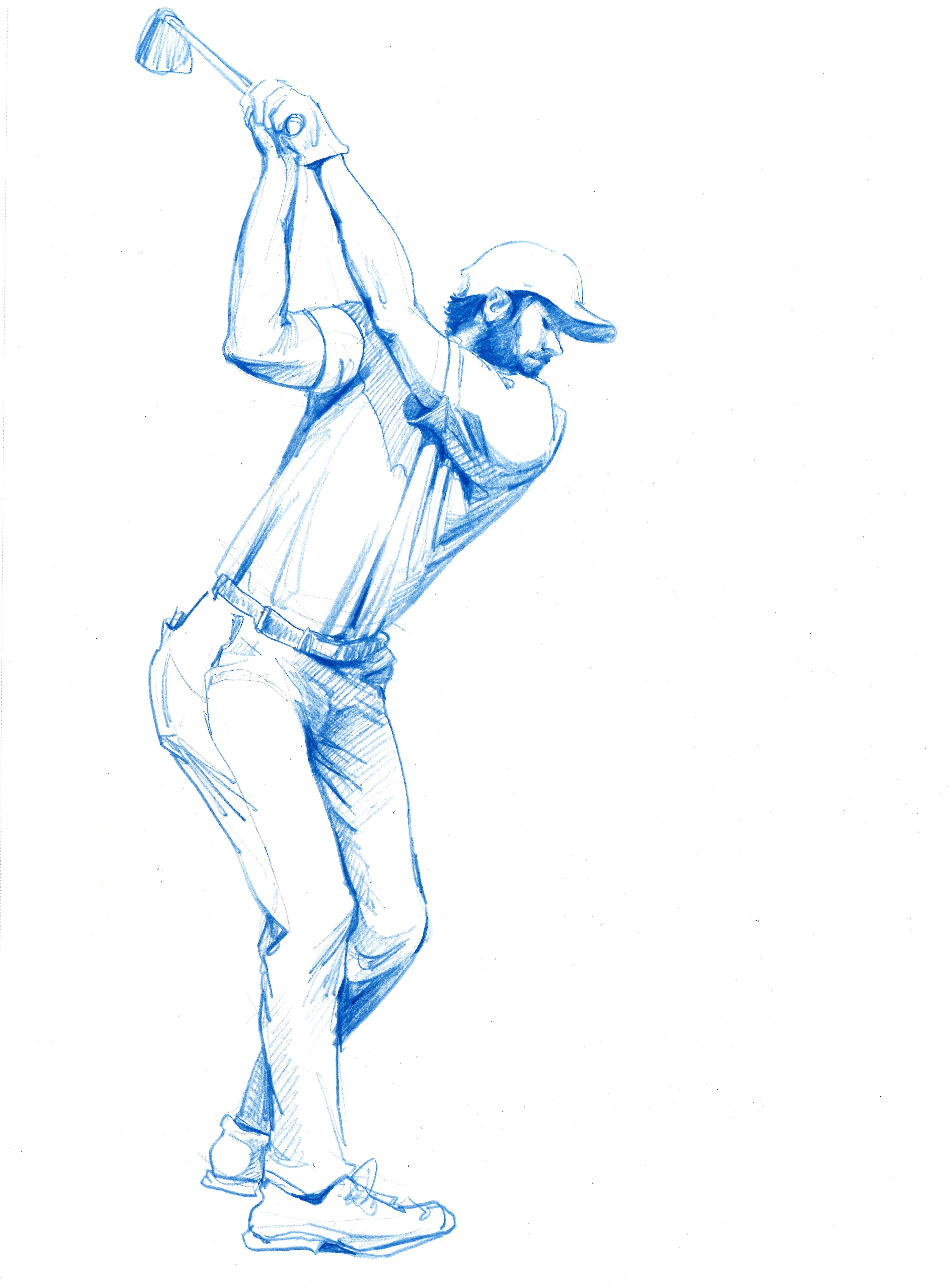 Watercolor and pencil sketch helps me relax from my 9 to 5 job in construction industry. But it’s beyond that. Golf plus Art – I can’t think of anything else that could calm and nourish my soul in a similar way. Every quiet night before bed time sitting by my dining table painting a portrait of a golfer, a green, a hole, a course is the most peaceful joyful thing and my favorite time of the day.